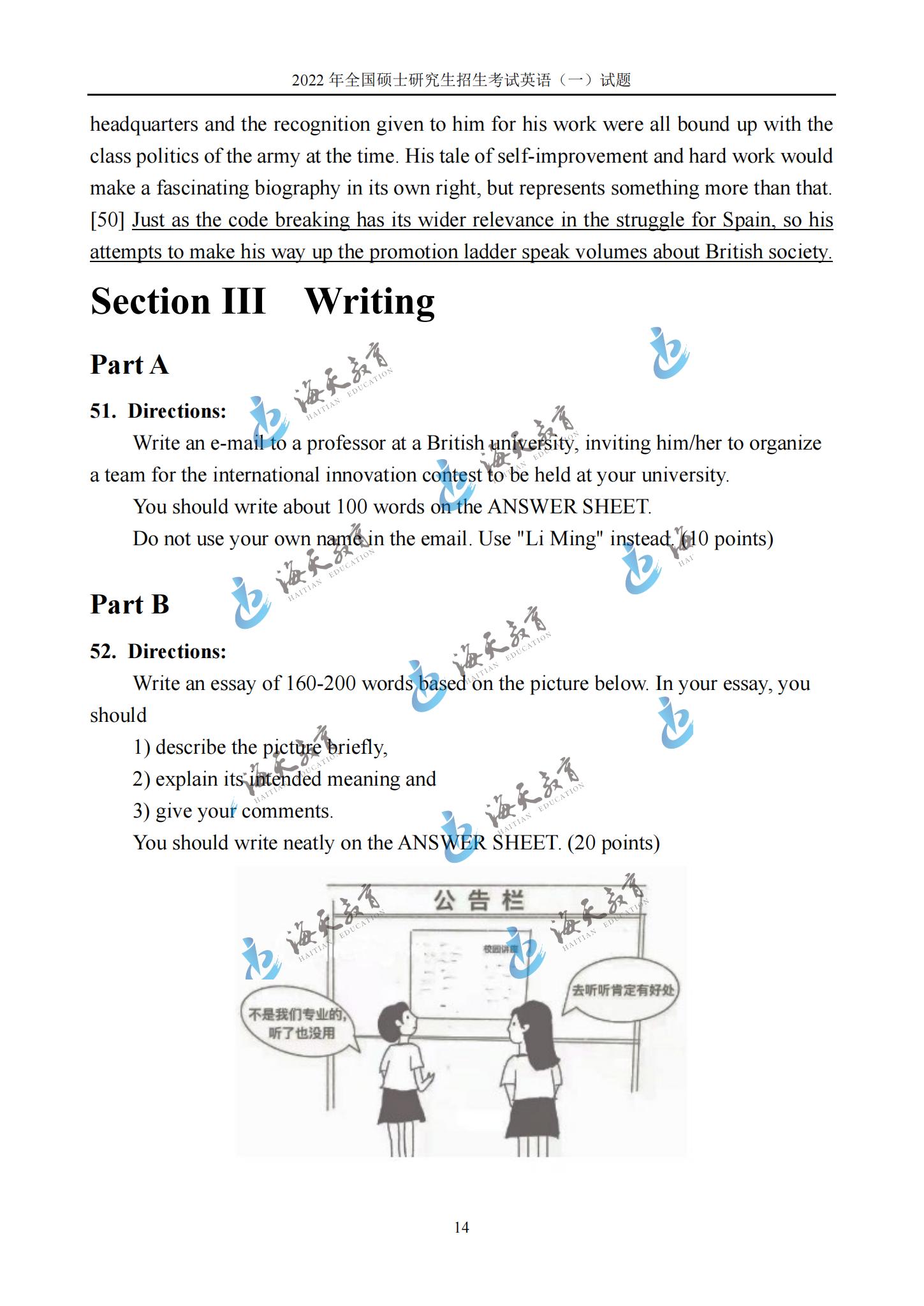 2022考研英语一真题原文完整版