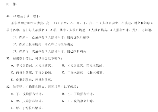 三、逻辑推理:第26——55小题,每小题2分,共60分。下列每题给出的A、B、C、D、E五个选项中,只有一项是最符合题目要求的。