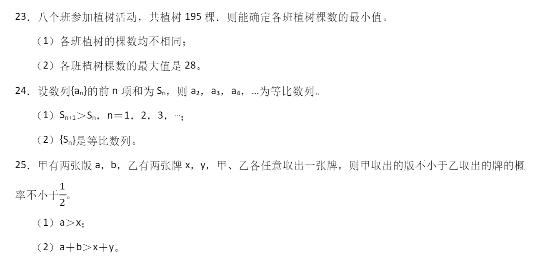 二、条件充分性判断:第16——25小题,每小题3分,共30分,要求判断每题给出的条件(1)和条件(2)能否充分支持题干下所以陈述的结论。A、B、C、D、E五个选项为判断结果,请选择一项符合试题要求的判断。