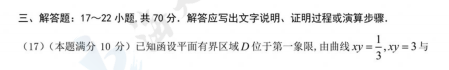 三、解答题,17-22小题,共70分。解答应写出文字说明,证明过程或演算步骤。